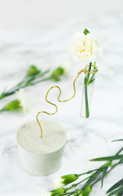 Les enfants ont pu réaliser cet élégant soliflore pour leur maman. La réalisation est plutôt simple et rapide. Nous avons réalisé le socle en béton (aussi réalisable avec du ciment), que nous avons coulé dans de petits moules en silicone. Vous pouvez aussi utiliser des emballages en plastique divers si vous n'avez pas de moules (par exemple, de petits pots de yaourt ou de crème fraîche).
